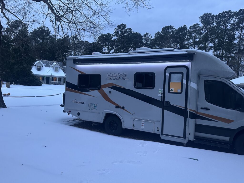 Weather plays a crucial role in van life. It dictates where I go, how I prepare for the night, and where I park. I find myself frequently checking weather forecasts to plan my route and activities. This past year, I was in the path of a hurricane, several tornados and a snow/ice storm. It is important for me to be in a place where I know I can move to safety if needed. The R Ranch, where I spend much of my time, has a safe place for me to stay if remaining in the van is not wise. There have been times when I have been at a campground and moved closer to the bath house as bad weather approaches. Although I find sleeping to the sound of gentle rain soothing, having my weather app alert me to severe storms in the middle of the night can be unsettling.